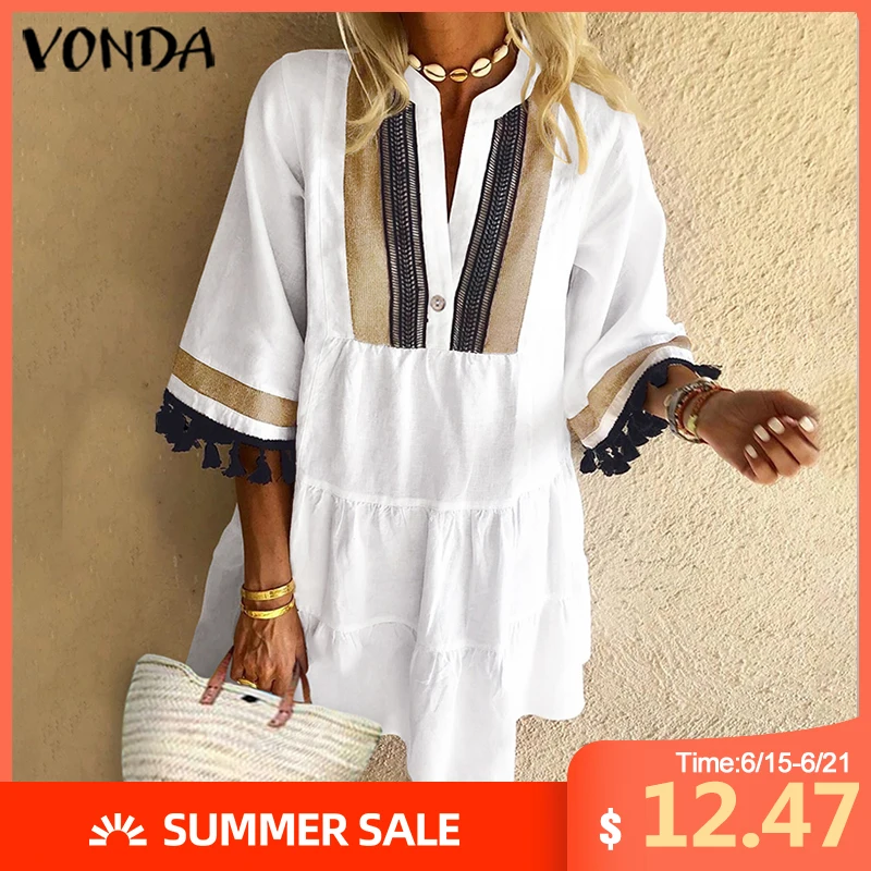 VONDA, летнее пляжное платье для женщин, винтажный сарафан с принтом, половина рукава, v-образный вырез, вечерние платья 2019, богемное платье, Пов...