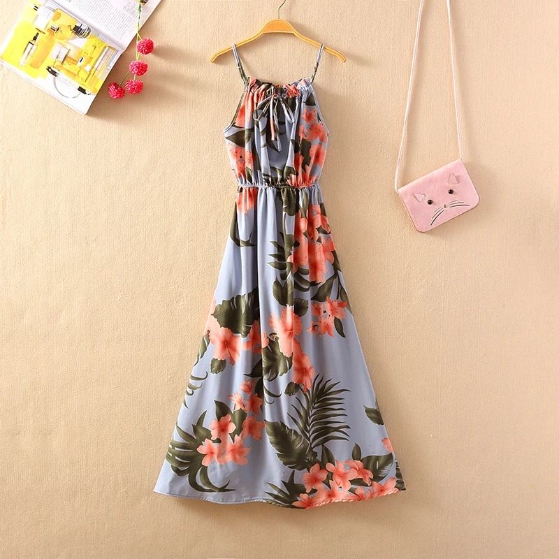Женское платье на бретельках 2020 летнее женское винтажное платье с цветочным принтом без рукавов ТРАПЕЦИЕВИДНОЕ богемное пляжное платье повседневное Длинное Платье Макси