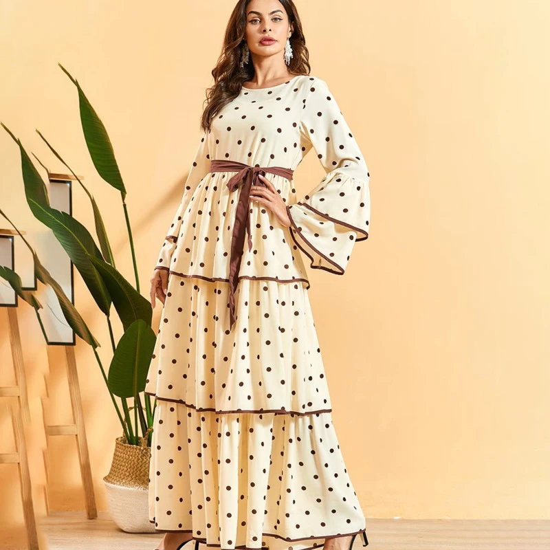 Женское повседневное плиссированное платье EWQ, с круглым вырезом, длинными расклешенными рукавами, высокой талией и оборками, весна-лето 2020, AW31900M