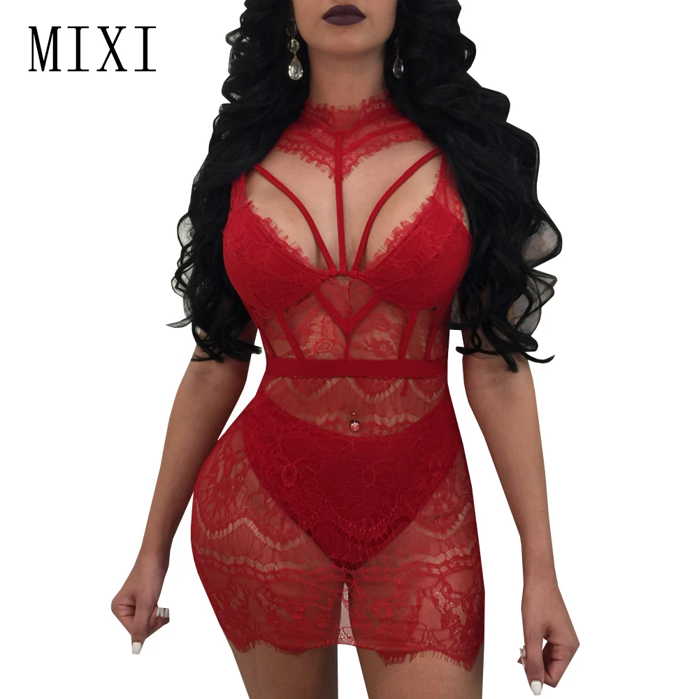 Микси Для женщин кружевное платье Лето рукавов See Through вечерние Клубные пикантные платья спинки выдалбливают облегающее платье мини черный,...