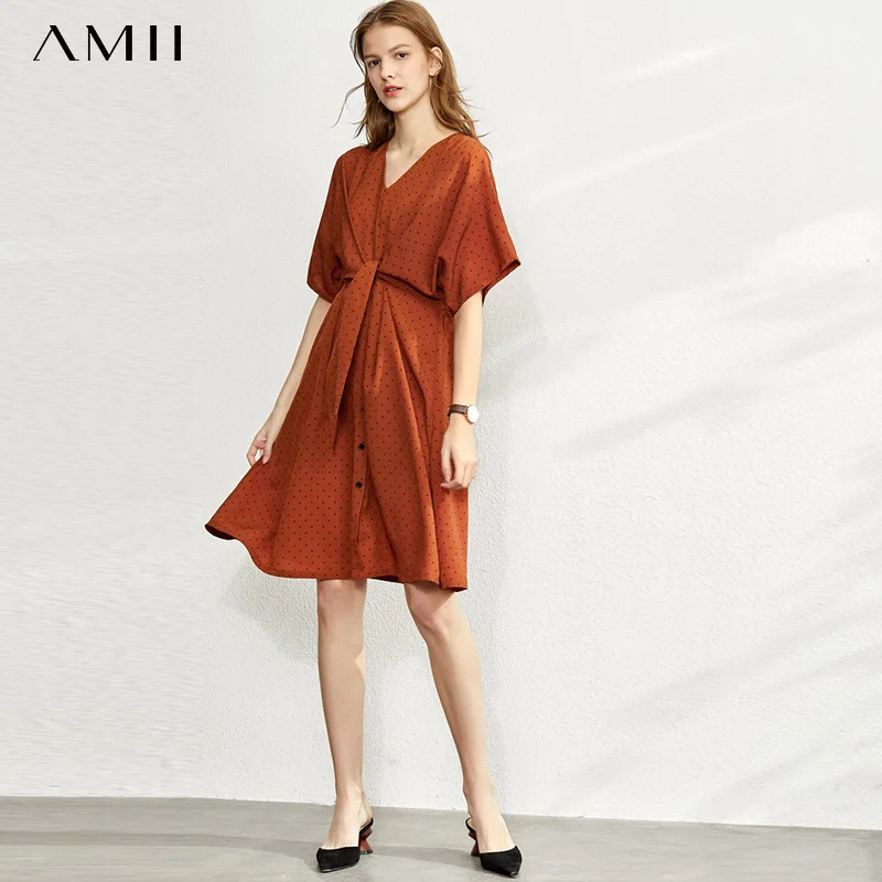 [Скидка 2020.1.6-1,10] Amii французское ретро платье женское Новое весеннее 2020 шифоновая юбка с v-образным вырезом и принтом