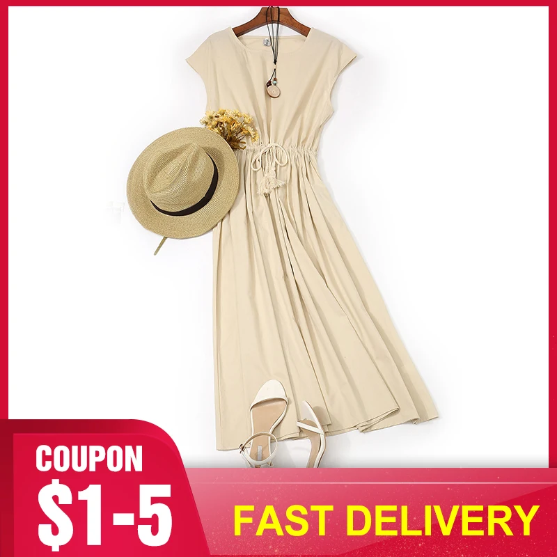Женское длинное платье в стиле бохо, лето 2020, модное корейское повседневное пляжное платье макси, однотонное черное платье со шнуровкой в японском стиле для молодых девушек