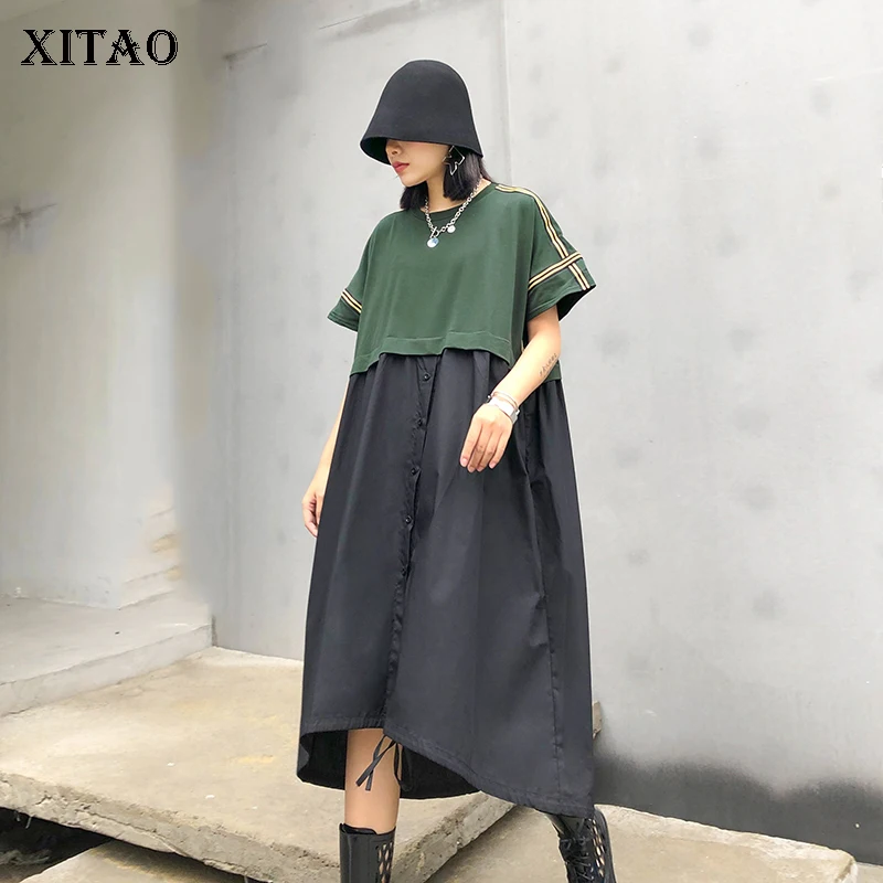 Платье XITAO женское, в полоску, на кнопках, с завязками, лето 2020