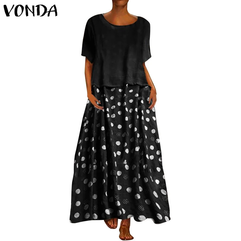 VONDA женское Макси длинное платье 2019 летнее платье богемное винтажное платье с коротким рукавом плюс размер Повседневное свободное платье с принтом Vestido