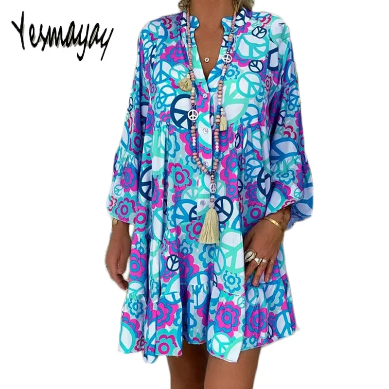 Прямая поставка, платье с длинным рукавом, повседневные платья макси для женщин, элегантные летние пляжные платья в стиле бохо размера плюс,...