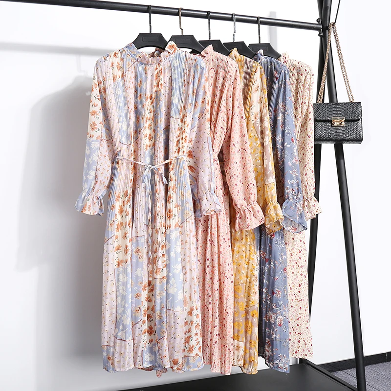 Tonglord женское шифоновое платье 2020 весна осень новое платье с длинным рукавом до середины икры цветочный принт Длинные плиссированные платья Платья для вечеринок