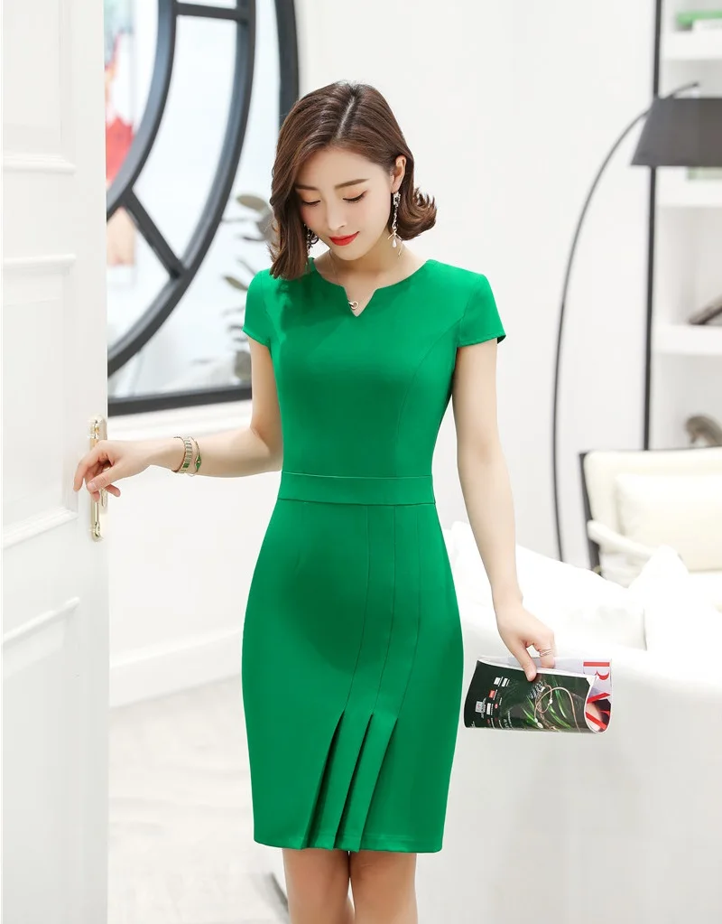 Новинка зеленый формальный офисный женский стиль Для женщин платья 2019 сезон: весна–лето визуальное уменьшение бедер платье для дам офис же...