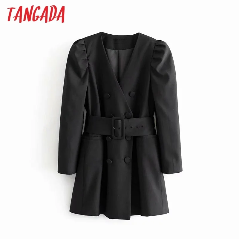 Tangada женское элегантное черное платье-блейзер с поясом с длинным рукавом 2019 Винтажный стиль женское офисное мини-платье vestidos 6P20