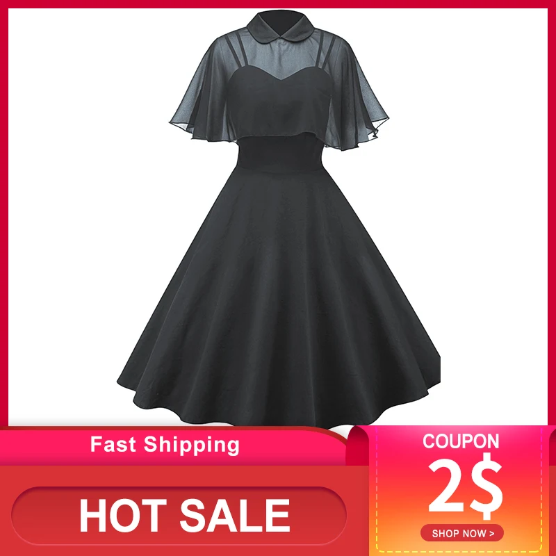 Женское винтажное платье-накидка в готическом стиле, осеннее платье из двух частей, сетчатая накидка, лоскутное плиссированное платье с воротником в стиле Питера Пэна, элегантные платья в стиле ретро, Goth