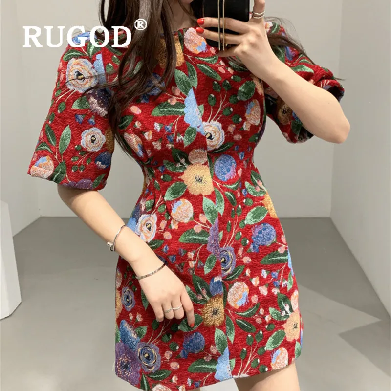 RUGOD 2020 весеннее облегающее мини-платье с цветами, женское Элегантное повседневное платье с коротким рукавом в Корейском стиле, женские вече...