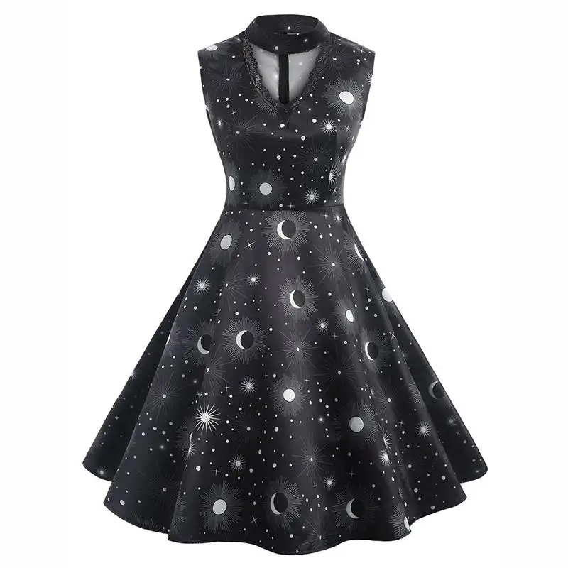 Женские готические платья винтажные черные свободные в горошек Цветочные кружевные платья с принтом женские модные элегантные открытые ве...