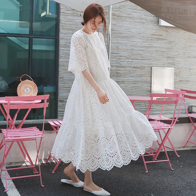 Платья LANMREM с вышивкой, белые летние платья из хлопка с коротким рукавом и круглым воротником, винтажная одежда YJ56300, 2020