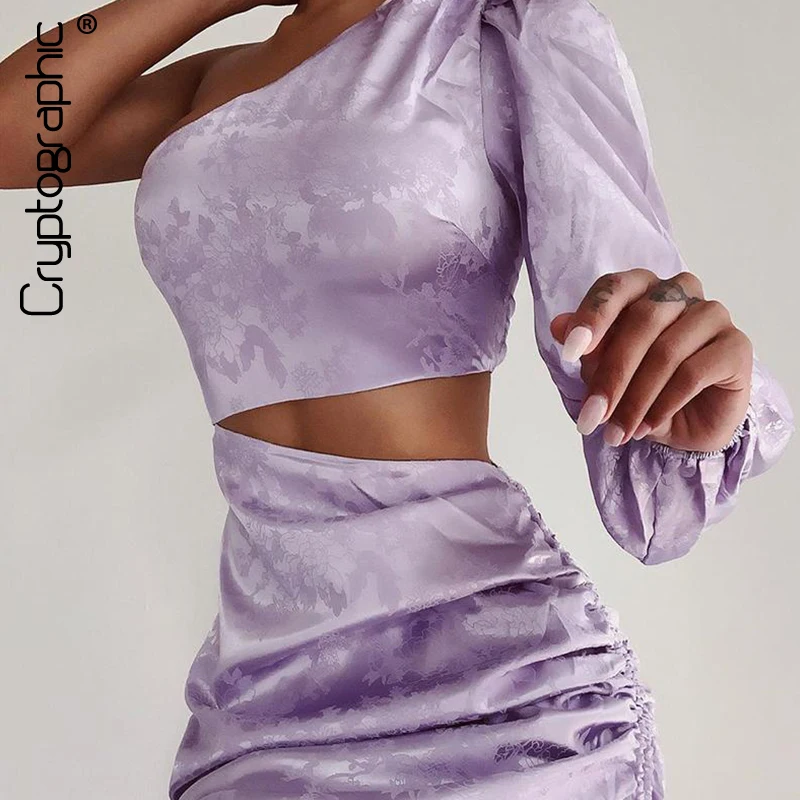 Женское жаккардовое мини-платье Cryptographic, летнее сатиновое мини-платье на одно плечо с завязками и вырезом на спине
