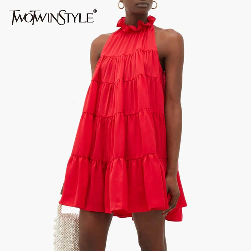 TWOTWINSTYLE богемное женское платье с бантом, мини-платья трапециевидной формы без рукавов с оборками на шее, женская летняя модная одежда, новин...