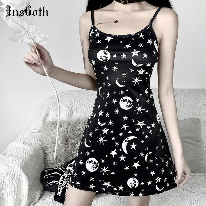 InsGoth сексуальное черное платье с открытыми плечами готическое платье Harajuku с высокой талией летнее Мини ТРАПЕЦИЕВИДНОЕ однотонное черное Повседневное платье