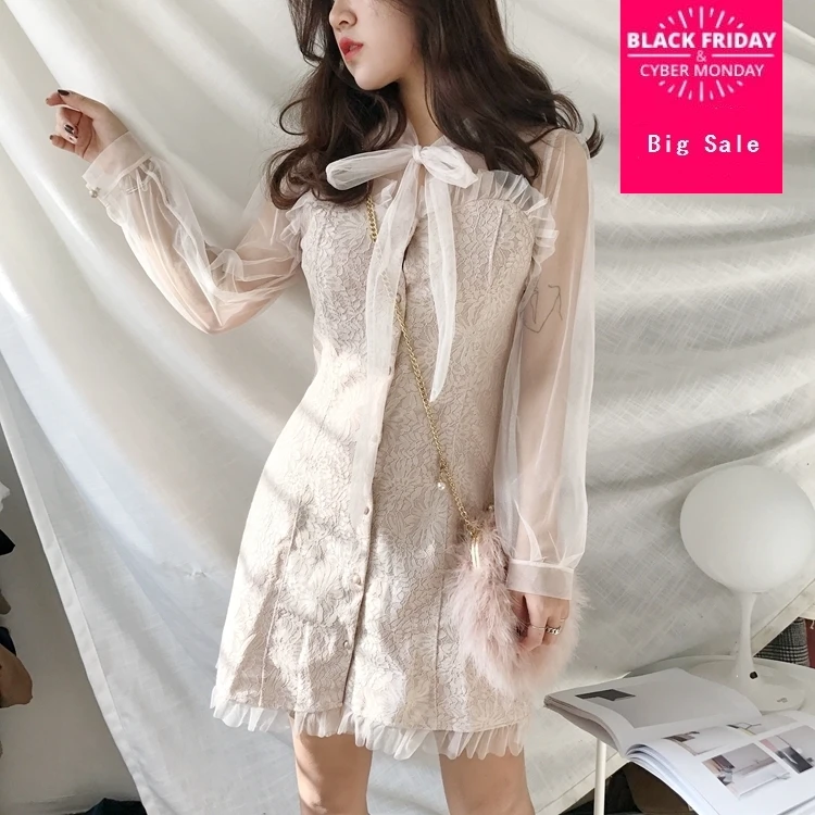 2019 весенние туфли бренд японский стиль лолиты платье для милых девочек рюшами был тонкий Зингель грудью платье wj2040 Перевозка груза падения