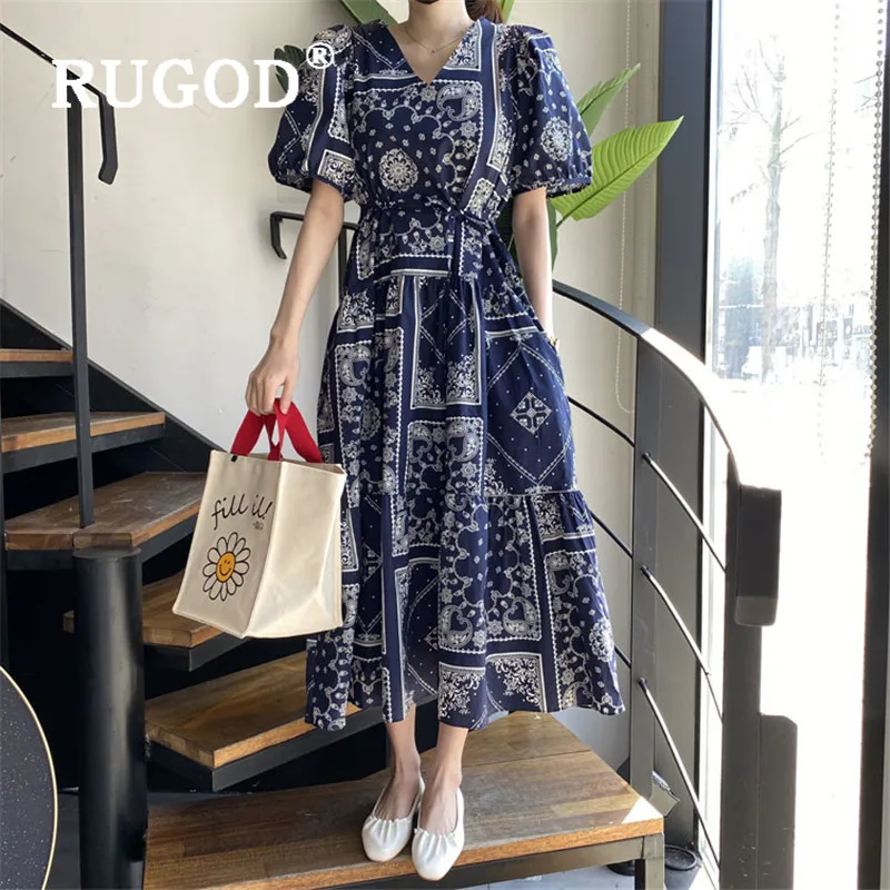 RUGOD Для женщин платье-макси цельное кружевные буфы на рукавах квадратный воротник-Line галстук пляжный стиль длинное платье 2019 новые летние м...