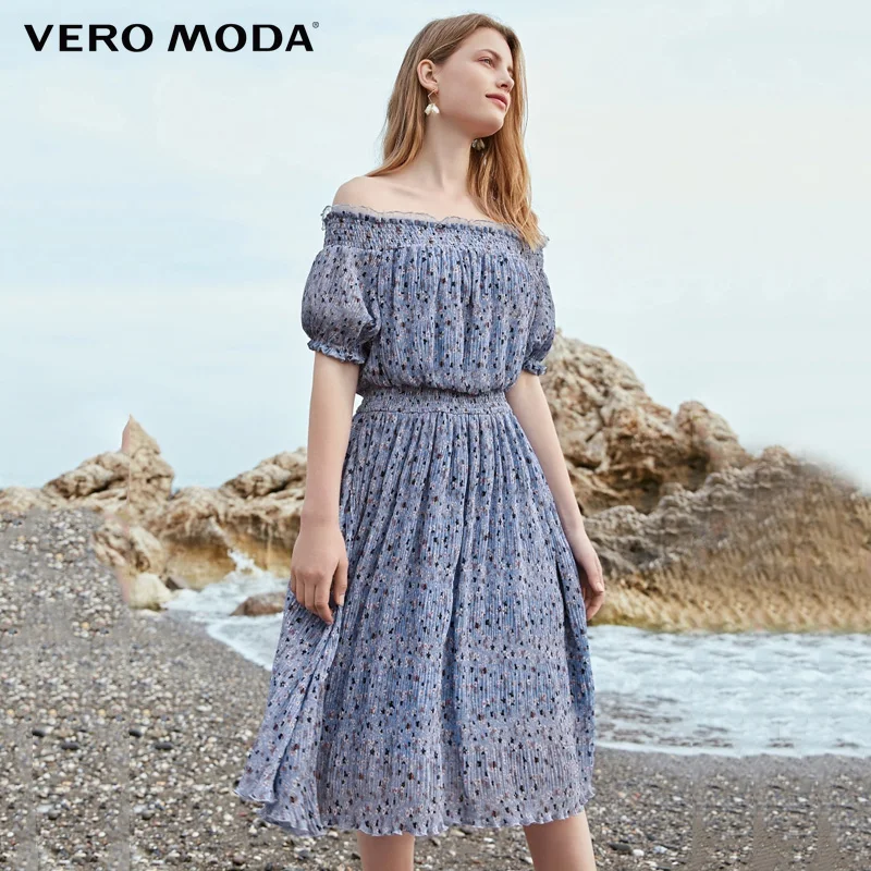 Vero Moda/летнее эластичное платье с цветочным принтом и вырезом лодочкой на талии | 31927B564