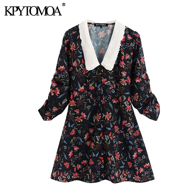 Женское мини-платье KPYTOMOA, винтажное плиссированное платье с цветочным принтом и воротником с вышивкой, модель 2020