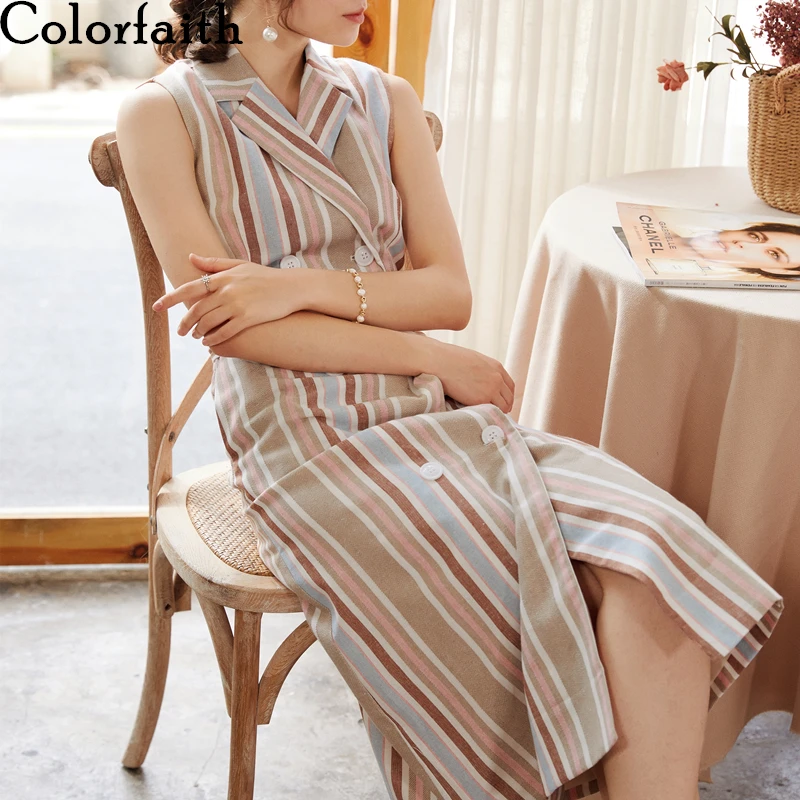 Женское длинное платье Colorfaith, хлопковое/льняное платье в полоску без рукавов с высокой талией на лето, 2020
