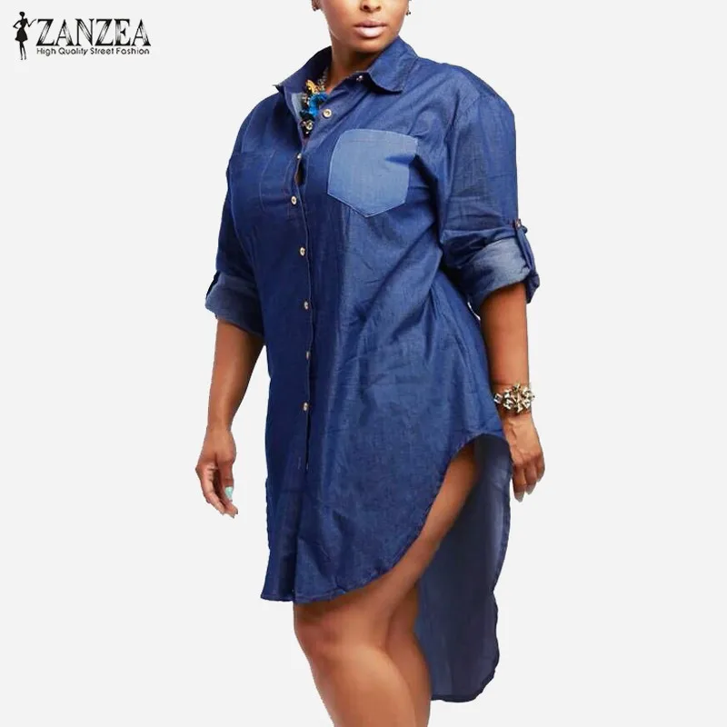 Женское винтажное джинсовое платье с отворотом и длинным рукавом, асимметричный подол, длинные джинсовые рубашки большого размера, осень 2020