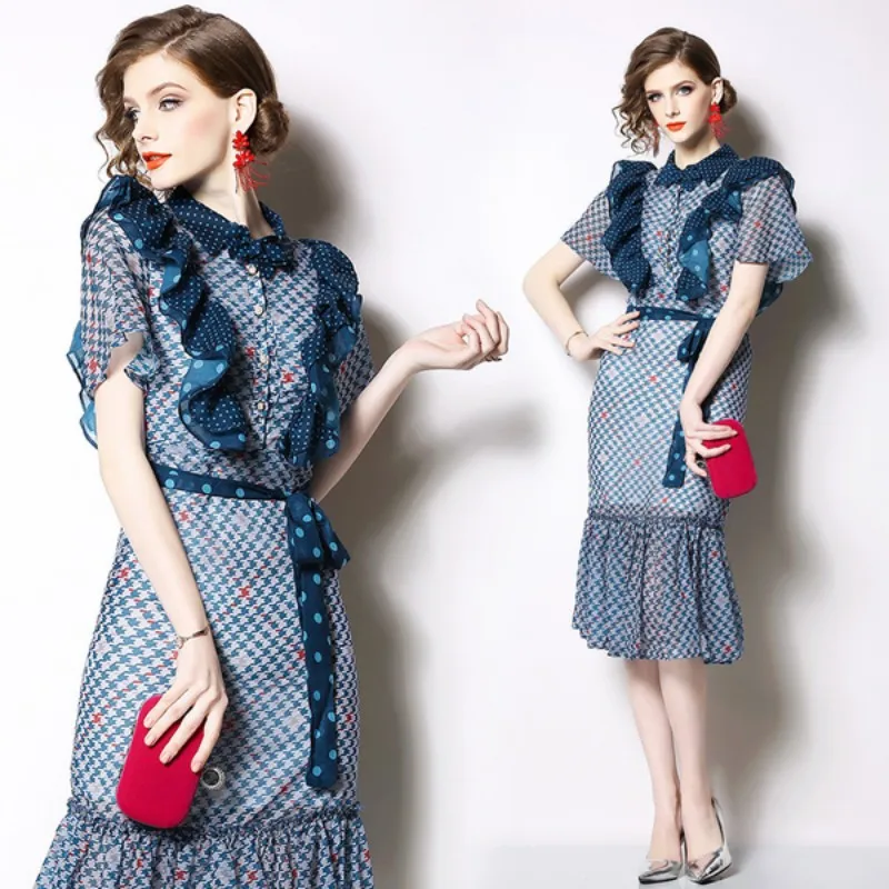 Новинка 2019, Осеннее элегантное женское шифоновое элегантное платье с рюшами, модное платье с бантом и поясом, Сетчатое платье русалки, Vestidos