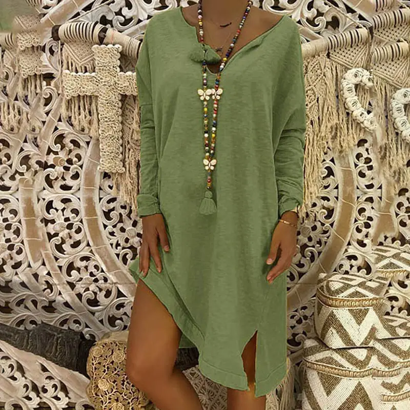 Асимметричное летнее женское платье с разрезом, однотонное платье с длинным рукавом и v-образным вырезом, миди платья, большие размеры 5XL 2019, ...