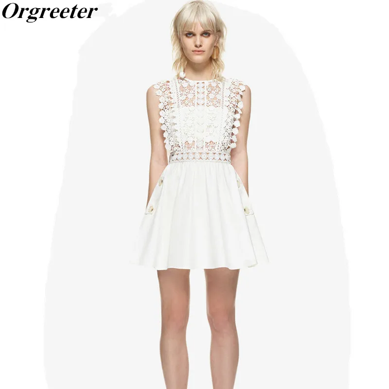 Новинка 2018, Летнее мини-платье в стиле автопортрета, женское кружевное лоскутное платье с цветочной вышивкой и высокой талией, вечернее платье на бретелях