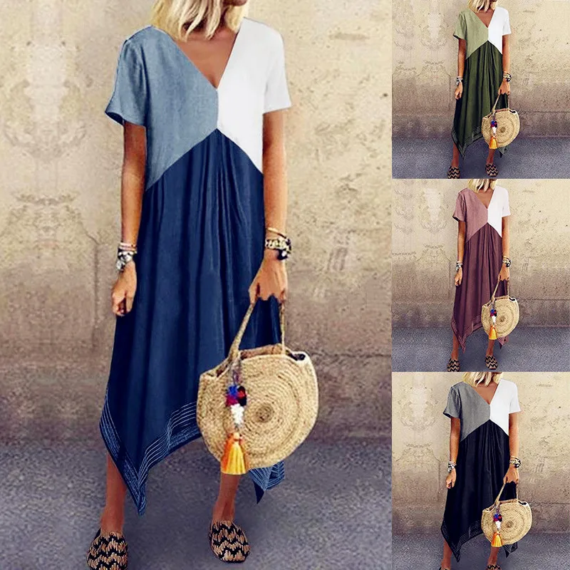 MISSOMO Макси платье женское повседневное элегантное лоскутное 3/4 рукава o-образным вырезом на пуговицах с высоким низким подолом плюс размер д...