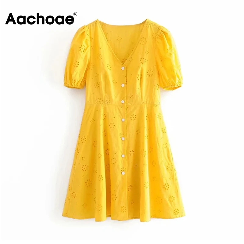 Женское шикарное мини-платье с цветочной вышивкой, летнее хлопковое платье с v-образным вырезом и коротким рукавом, Повседневный Сарафан 2020