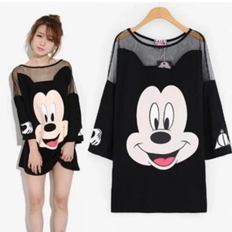 2018 Новый взлетно-посадочной полосы мультфильм Дизайн Микки дамы Для женщин печати мини-Короткие Платья хлопок сетки свободные платья vestidos ...