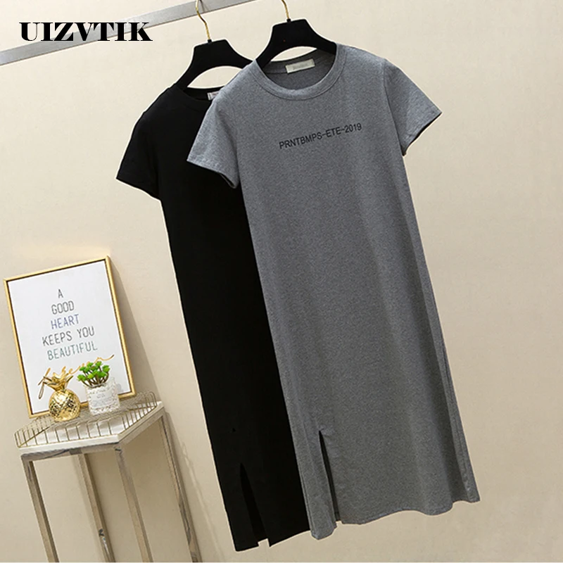 Элегантное винтажное Макси объемная футболка платье женское летнее 2019 повседневное плюс размер Бохо пикантные пляжные платья с надписью ч...