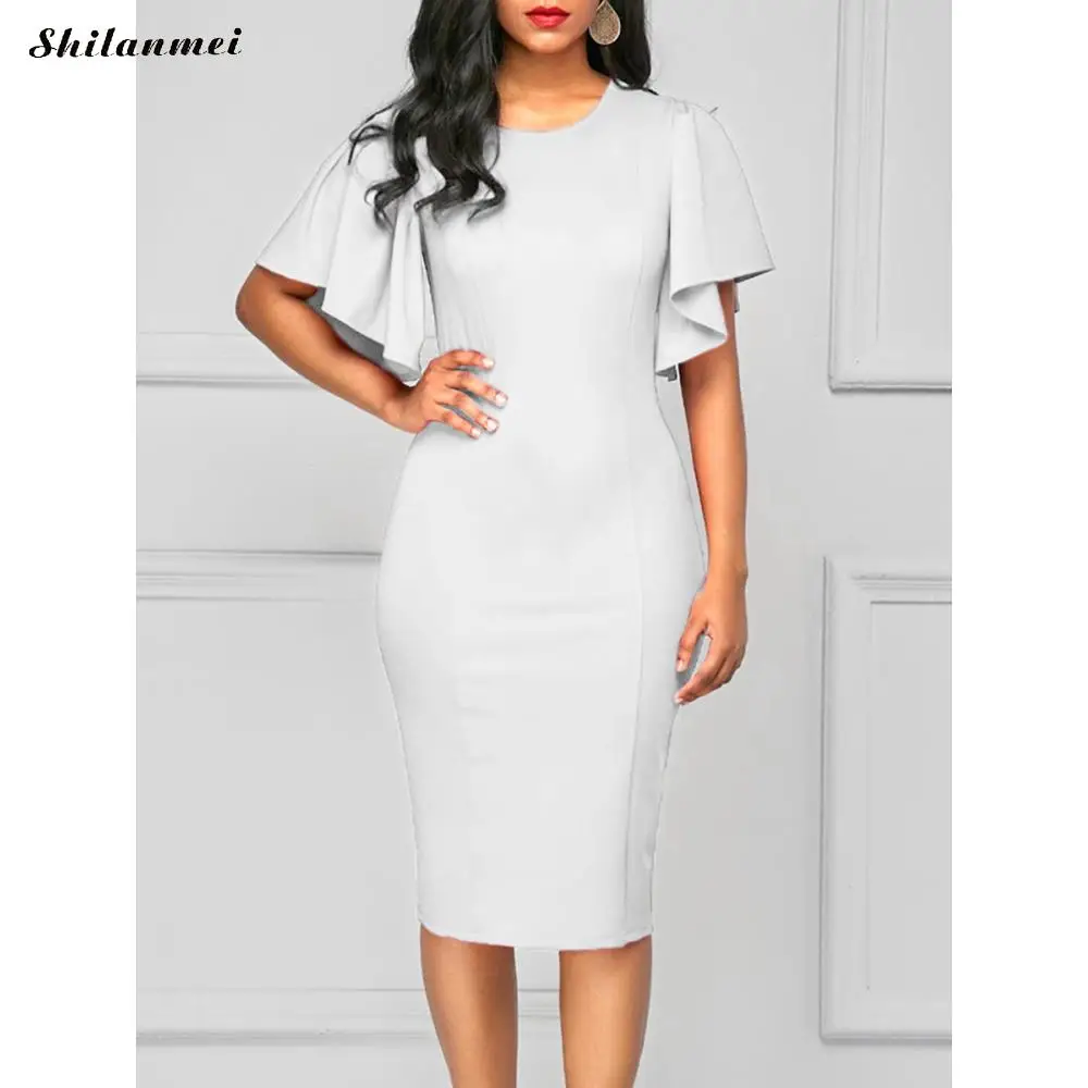 Плюс размер облегающее платье женское тонкое Плиссированное рукав элегантное платье миди офисные женские вечерние платья на бедрах 4XL 5XL
