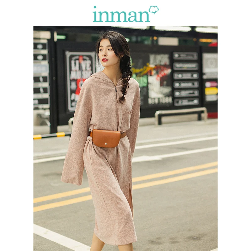 INMAN 2019 осеннее новое поступление с капюшоном, свободный рукав-капля, модный Повседневный свитер, Стильное женское платье