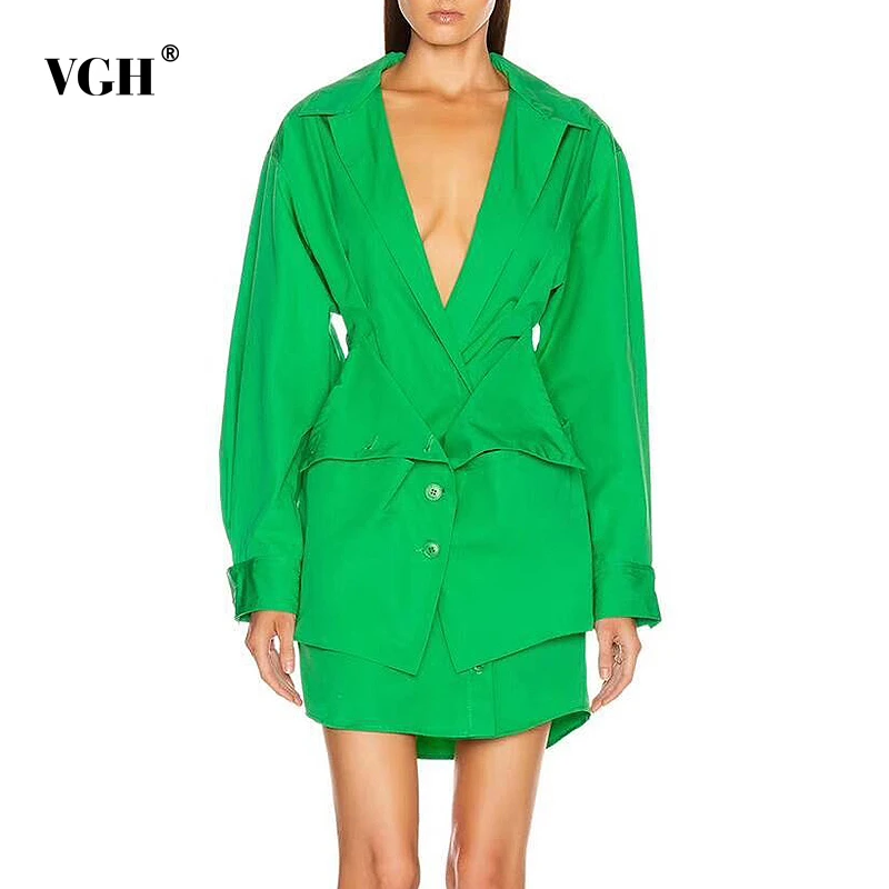Женское мини-платье с v-образным вырезом VGH, облегающее платье с длинным рукавом и высокой талией, модная летняя одежда 2020