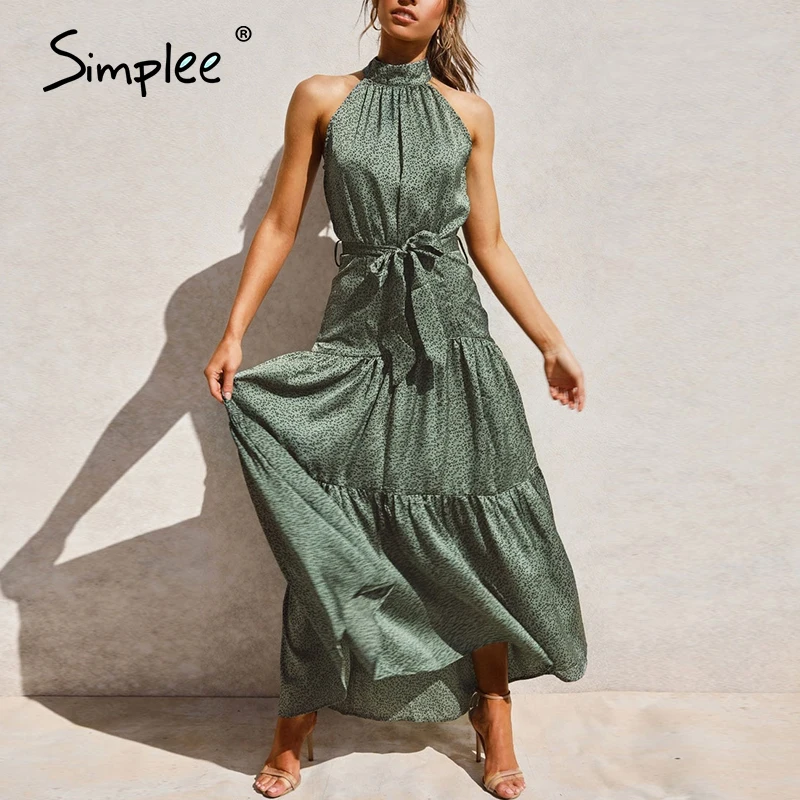 Simplee сексуальное платье без рукавов с бретелькой через шею винтажное Зеленое Длинное Платье Макси праздничное платье Весна Лето Лента для вечеринки элегантное 2020 vestidos
