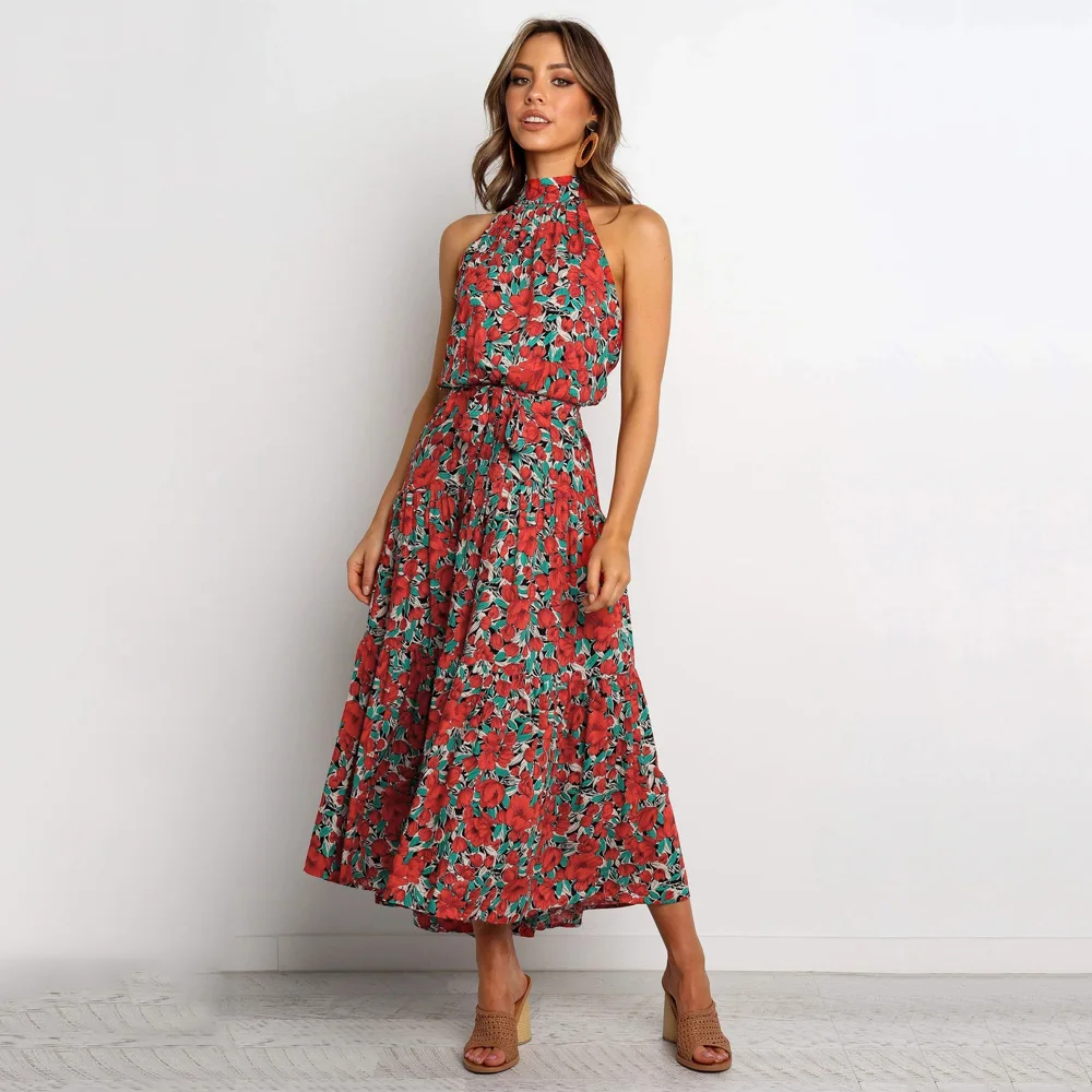 Женское платье 2019 модное женское Бохо цветочное Длинное Макси платье для вечеринки без рукавов Летнее пляжное платье June Прямая поставка