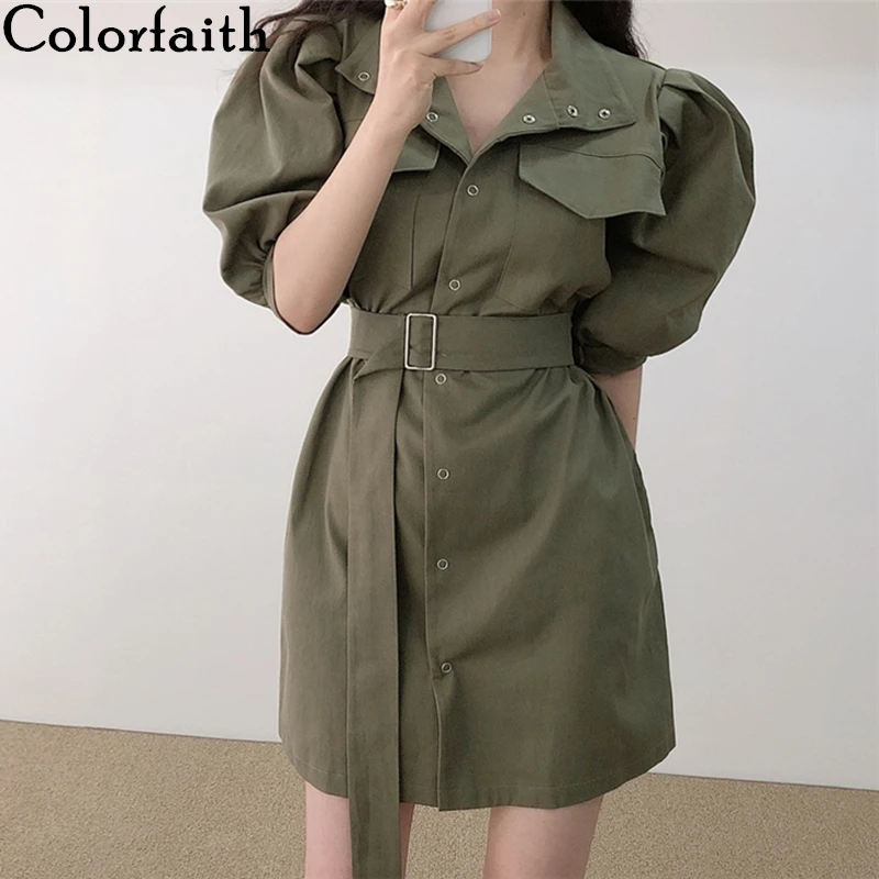Женское платье-карго Colorfaith, повседневное однобортное мини-платье с высокой талией и карманами, с рукавами-фонариками, на лето, 2020