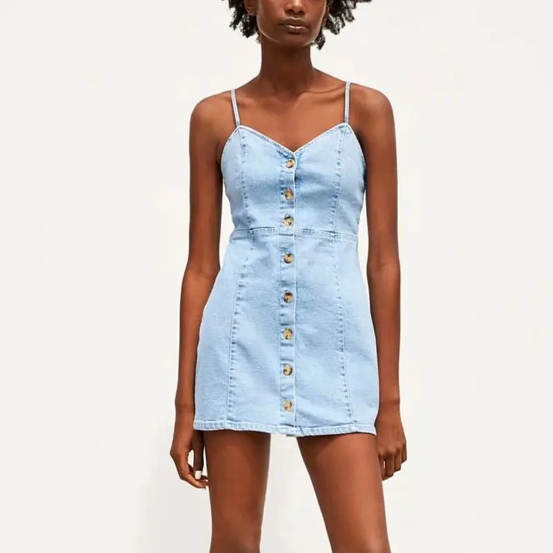 Летнее женское джинсовое платье на пуговицах в Корейском стиле 2019, Сексуальное мини платье без рукавов с открытыми плечами, женское повседн...