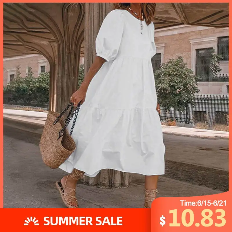 Летнее платье-пачка с подолом, женские сексуальные платья до середины икры с рукавом-фонариком, пляжный сарафан в богемном стиле, VONDA 2020, повседневные платья больших размеров