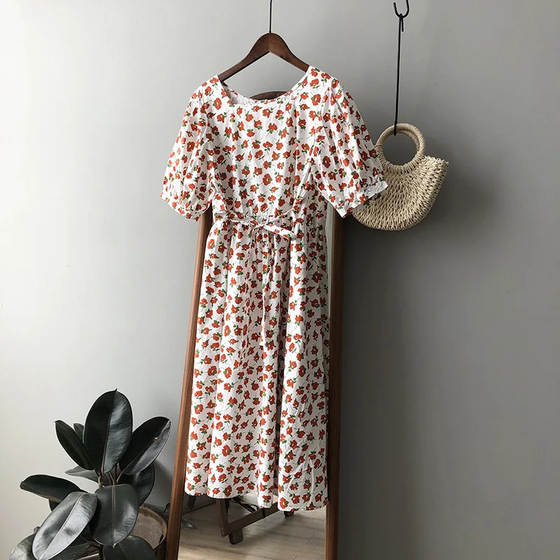 2020 Harajuku лето женщин платье Элегантный цветочный принт платье высокой талией вскользь Шнуровка Boho Длинные платья Vestidos Femme Streetwear