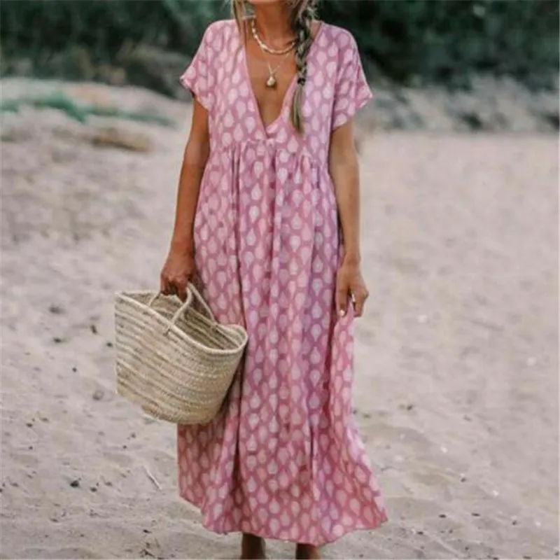 Женская Бохо цветочная мода мешковатая Туника Платья женские модные повседневные свободные кафтаны Сарафан для пляжа и выходных женская н...