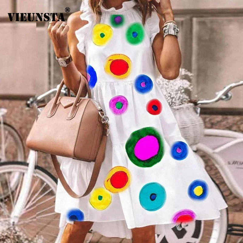 Маргаритка Подсолнух Элегантное летнее платье с принтом для женщин, с круглым вырезом, винтажные вечерние платья 2020, платье с бабочкой без рукавов, мини платья Vestidos