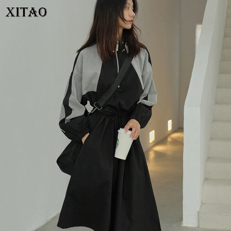 Y [xitao] Корея новые модные Для женщин 2018 Осень Свободные стенд воротник длинный рукав платье Женский Лоскутное Платье До Колена ZLL1946