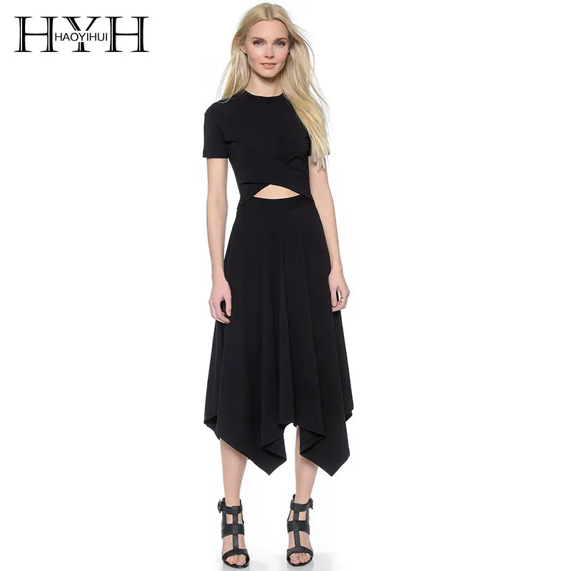 HYH HAOYIHUI/летнее платье с круглым вырезом и коротким рукавом, асимметричное, Сексуальные вечерние, однотонные, с высокой талией, тонкие платья,...