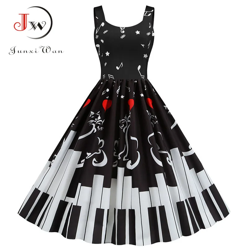 Сексуальное женское вечернее платье с принтом нот, летнее черное тонкое винтажное платье трапециевидного силуэта размера плюс, платья на День святого Валентина