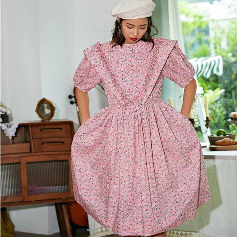 Everkaki Винтаж Шик для женщин цветочный принт короткий рукав богемное вискоза хлопок женская одежда макси v-образный вырез оборки Свободные Boho...