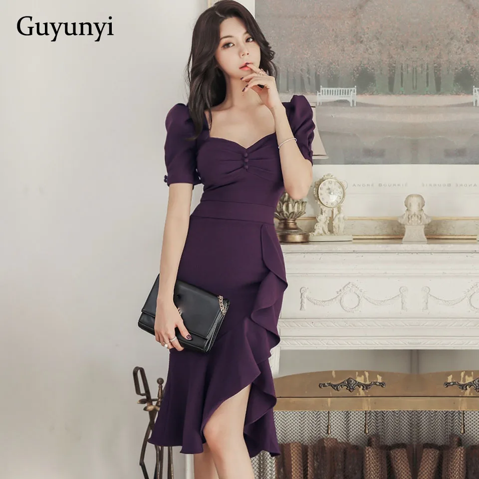 Однотонное облегающее элегантное вечернее платье 2020 весеннее приталенное маленькое сексуальное асимметричное женское платье с рюшами в д...