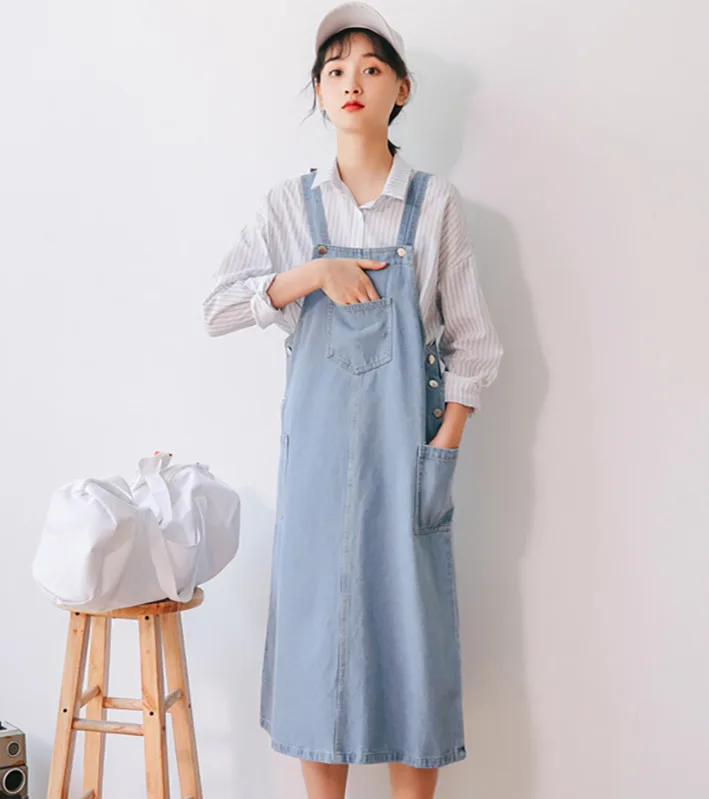 #2482 комбинезон джинсовое платье на подтяжках женские летние джинсовые платья миди корейская мода с боковыми карманами на пуговицах джинсовое платье без рукавов