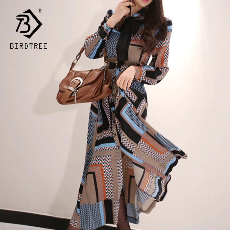Винтажное Элегантное длинное женское платье с принтом, весна 2019, однобортное платье-рубашка, приталенное платье, длина до лодыжки, Vestidos D9N105Q